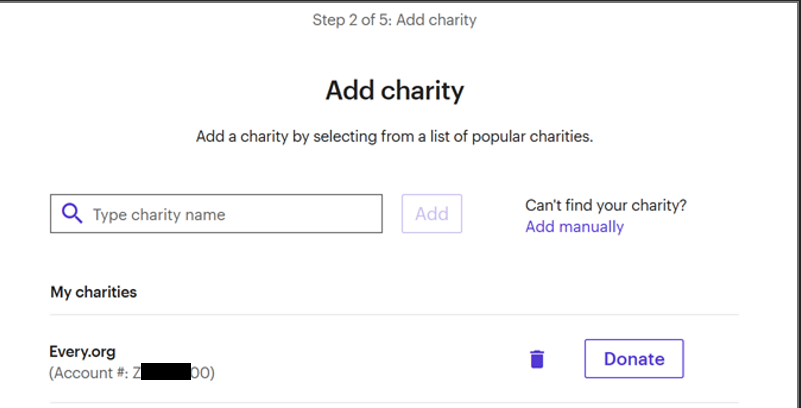 This charity brokerage account information is saved indefinitely. If the charity's brokerage information later changes, then future donations may erroneously go to this old saved account. Therefore, always verify that the account number matches the account number provided by Every.org during the donation process. If they differ, then you will need to delete the entry and add it again with the latest information.